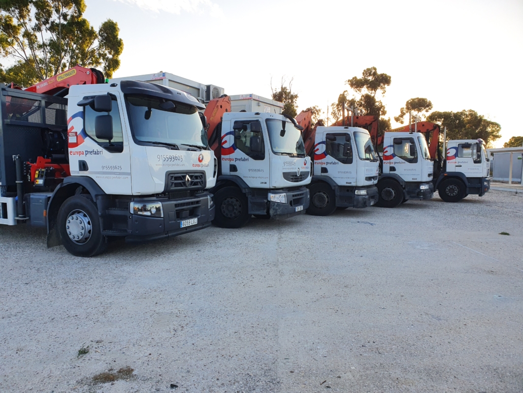 - Flota de vehículos propia, compuesta por camiones grúa, remolques y vehículos industriales, que nos permite gestionar directamente la logística y el montaje de nuestros productos.
