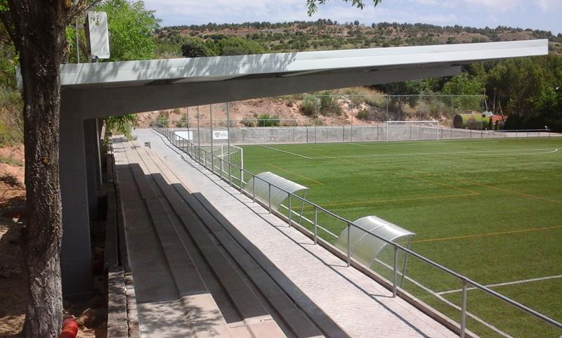 Our metallic shelters are generally used to realize parking shelters, but they also can have various uses. This time, we installed metallic shelters to cover the football stadium bleachers of Morata de Tajuña, located in the community of Madrid. Here are some photos of the work we have done.