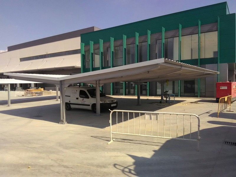 - Fabrication, design and installation of parking canopies for the new AVE railway station at Elche, Alicante. On this occasion, we carried out the installation of 96 canopies, being 90 of them standard canopies, 14 single and 76 double. Besides, there are 6 spaces with special dimensions for people with reduced mobility.