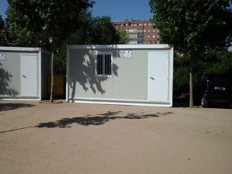 Modules préfabriqués avec toilettes et bureaux avec toilettes et bureaux d’approximativement 6 x 2,40 m de notre modèle C-2: