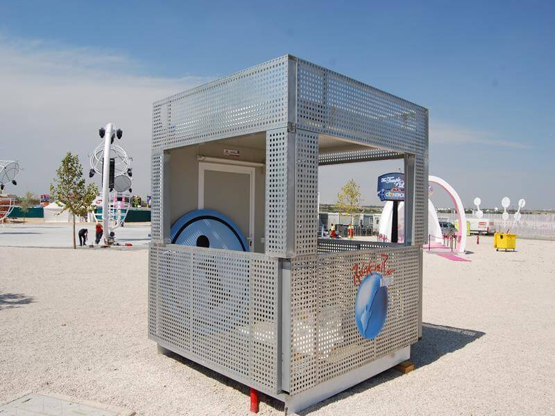 Nous avons de plus installé diverses constructions modulaires comme des kiosques préfabriqués, stands publicitaires, boutiques, bars, modules spéciaux de publicité, guichets…