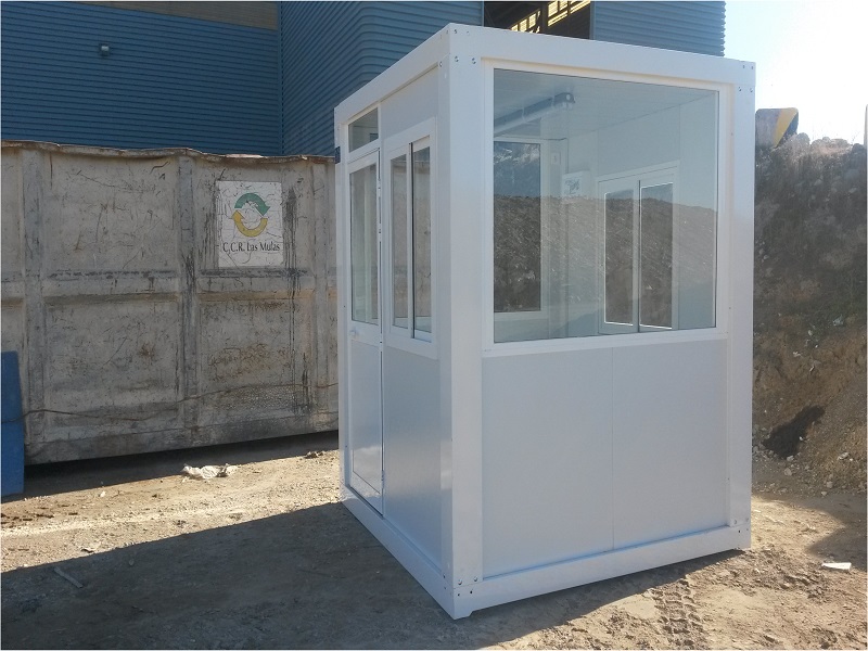 Nous avons fabriqué et fournis une guérite et des cabines de surveillance et de contrôle pour  la déchetterie de la Communauté de Madrid.