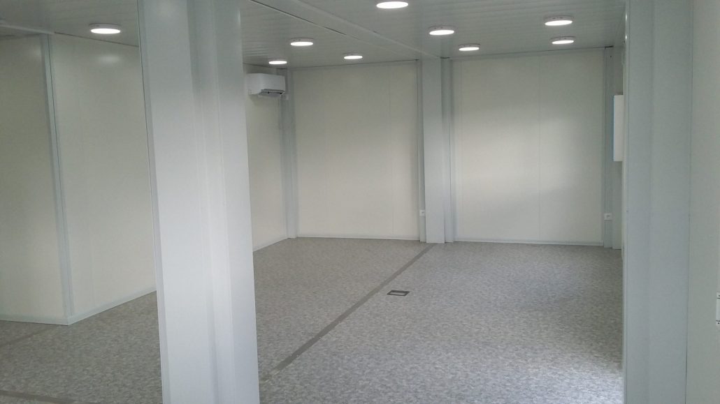 À l’intérieur du module a été réalisé des installations sanitaires, d’électricité et de climatisation.