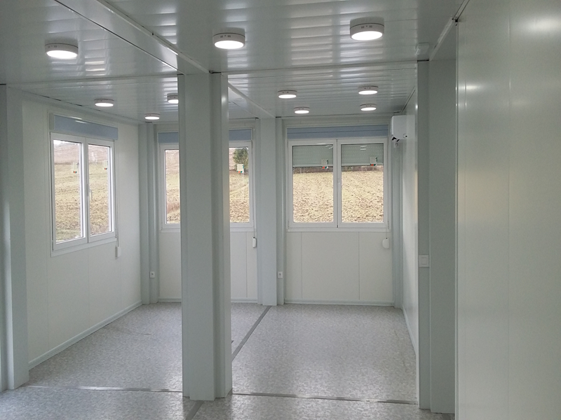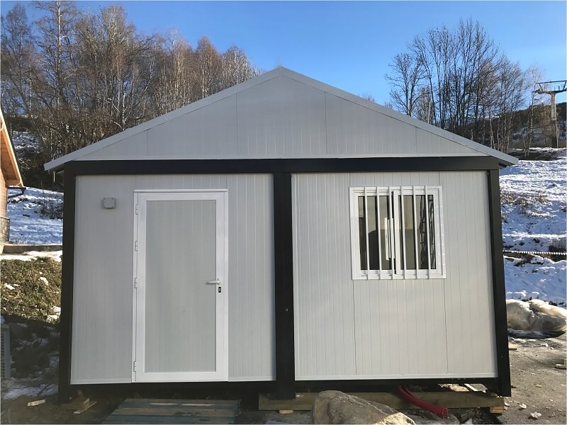 Ce type de construction modulaire est idéal pour les lieux à climat extrême étant donné leur excellent isolement grâce à leurs panneaux de laine de roche de 100mm.