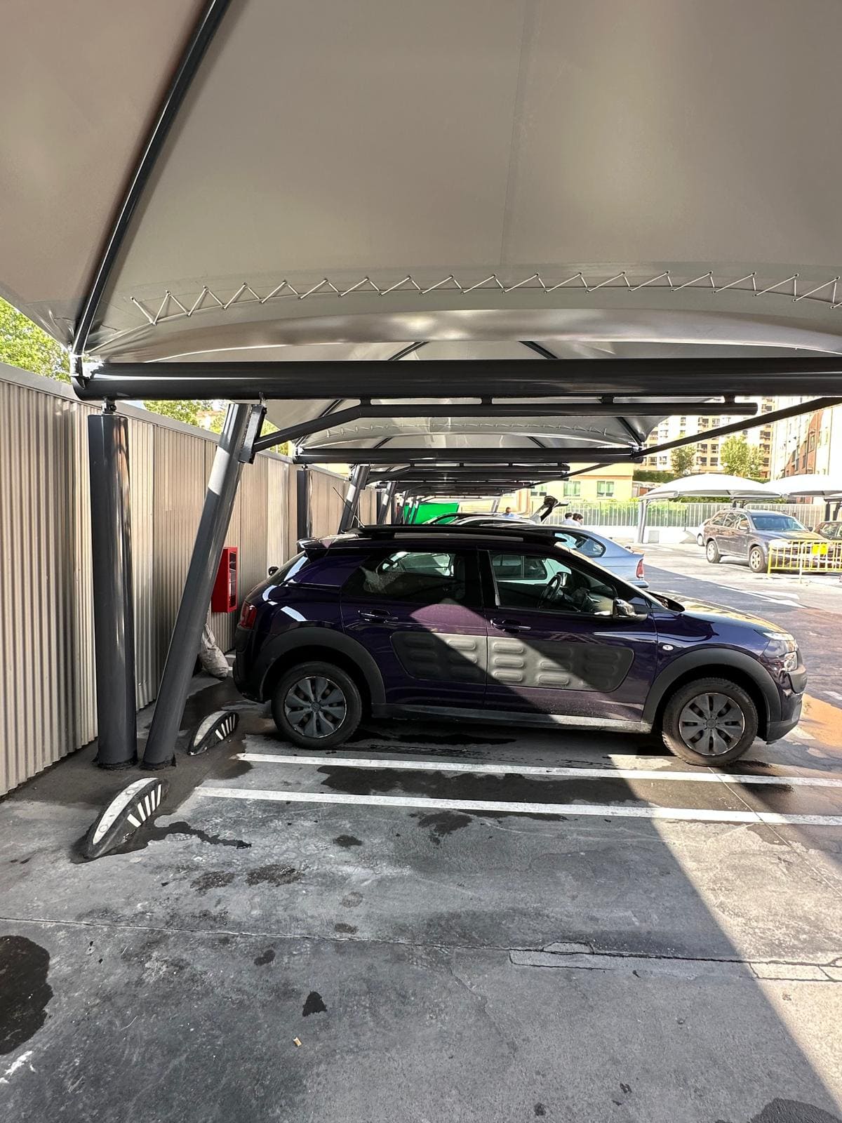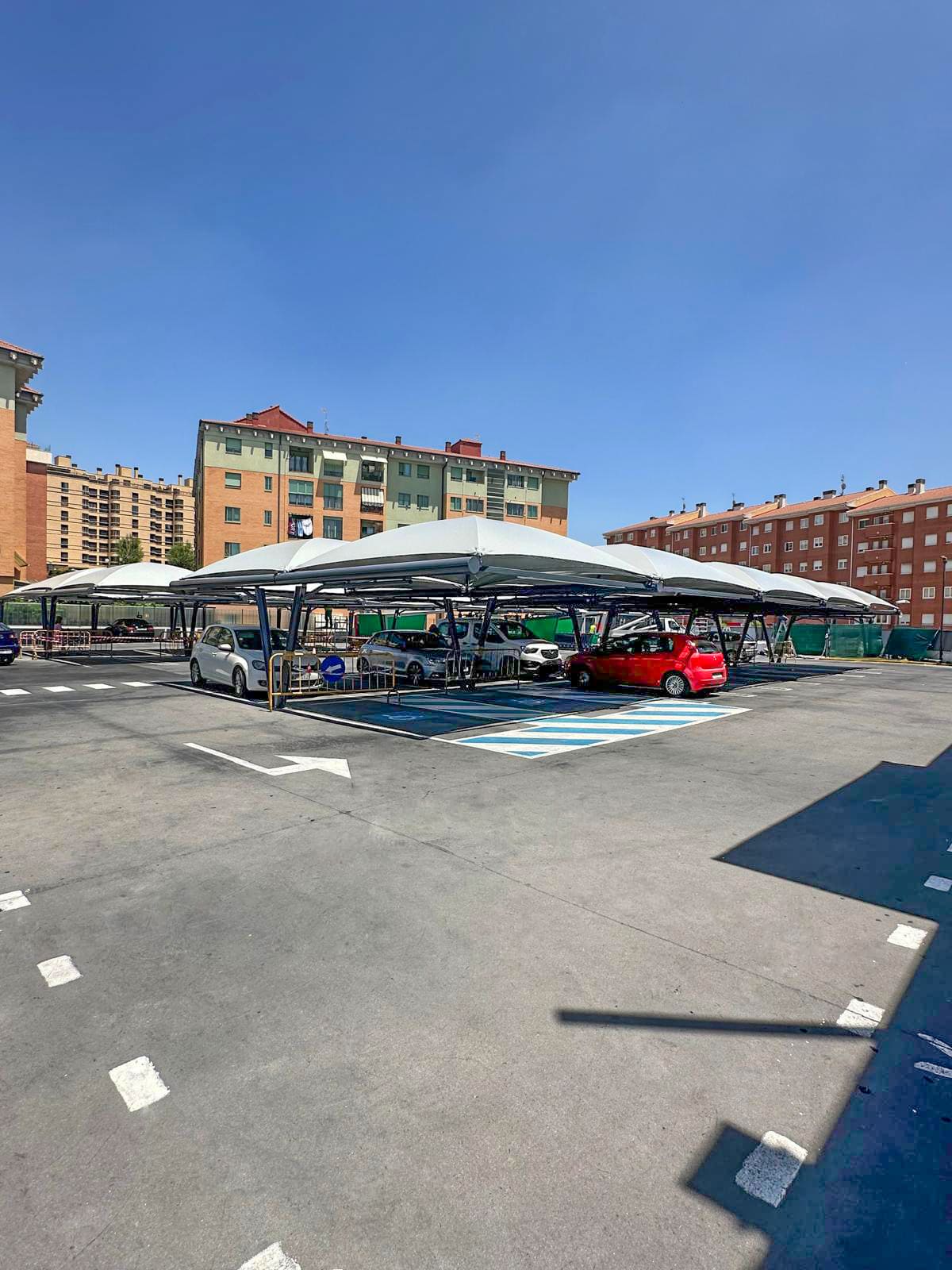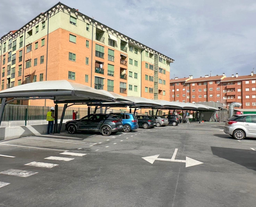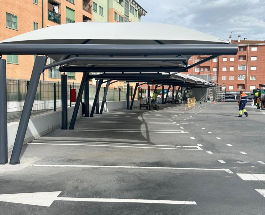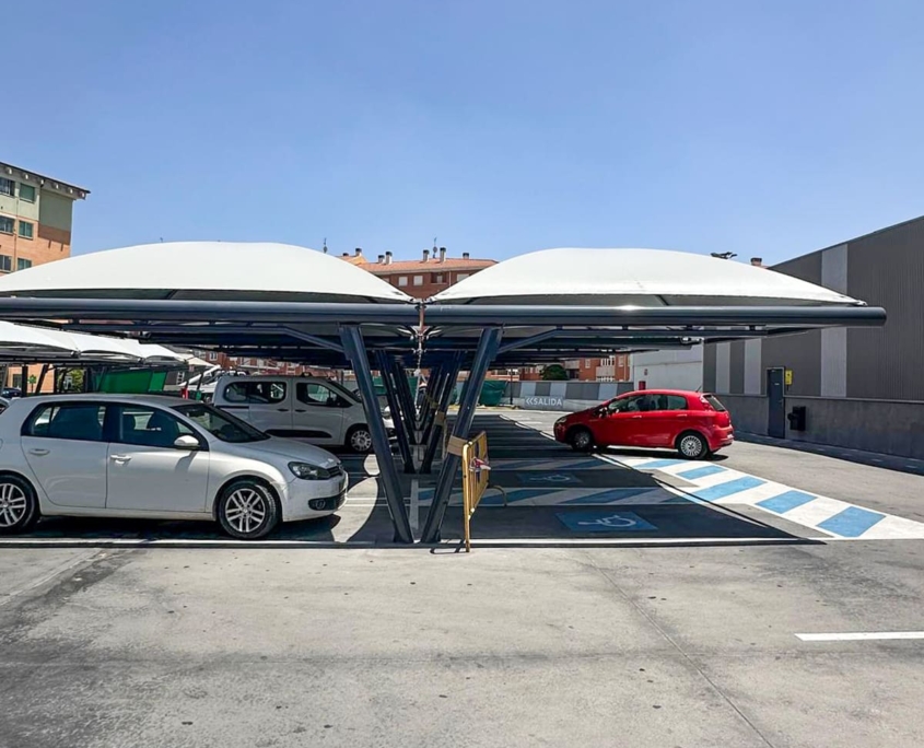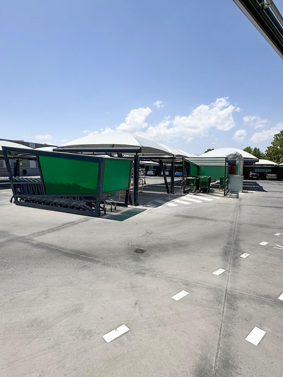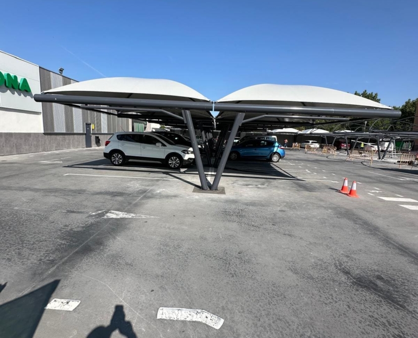 Proyecto ejecutado: Marquesinas textiles en parking Mercadona – Ávila