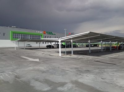 - El transporte y montaje de marquesinas de parking con Alucobond para Lidl , en el cual cubrimos 133 plazas de aparcamiento, de las cuales 80 plazas son sencillas y 53 plazas son dobles.