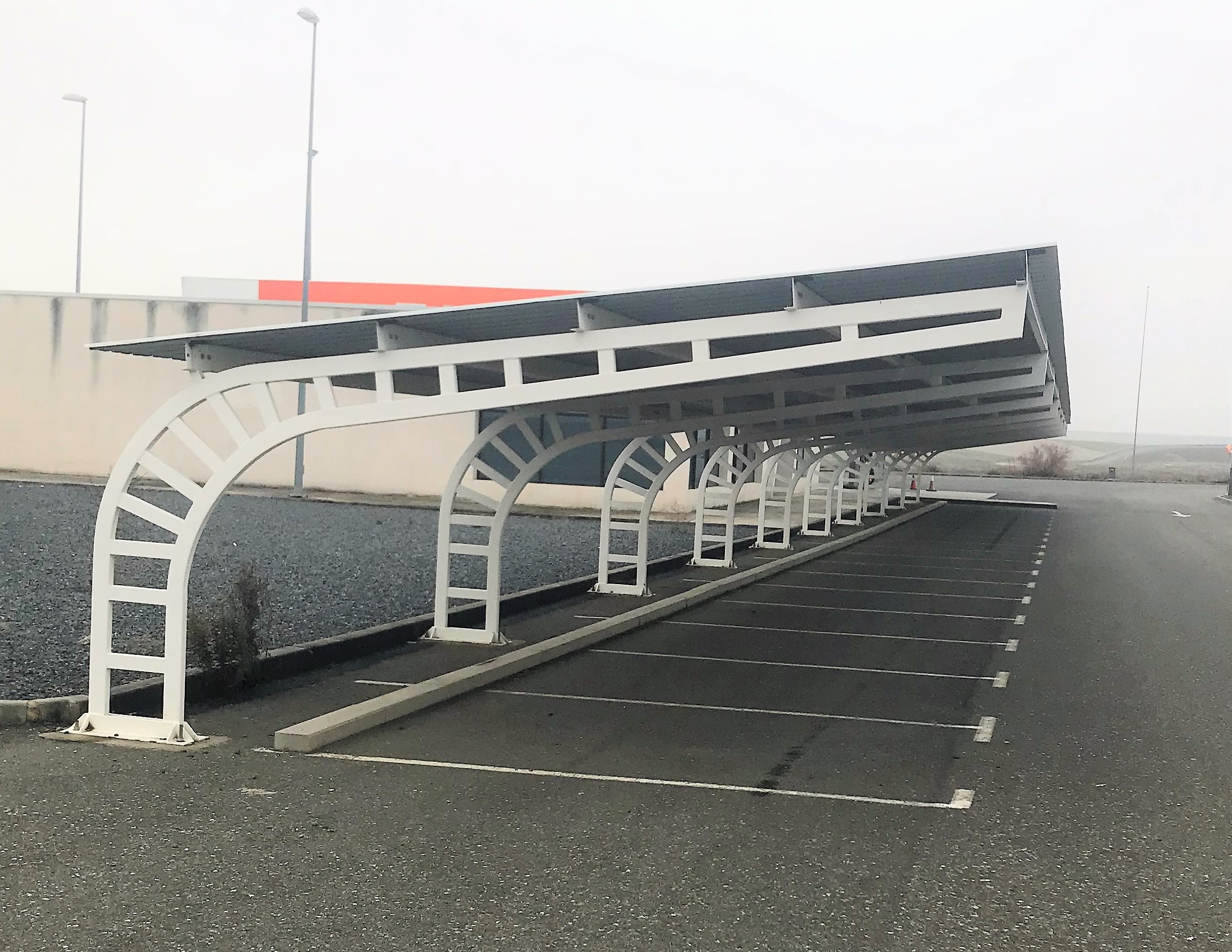 - Como empresa especialista en la fabricación de marquesinas de parking hemos desarrollado varios modelos idóneos para soportar la instalación de paneles fotovoltaicos sobre la cubierta.