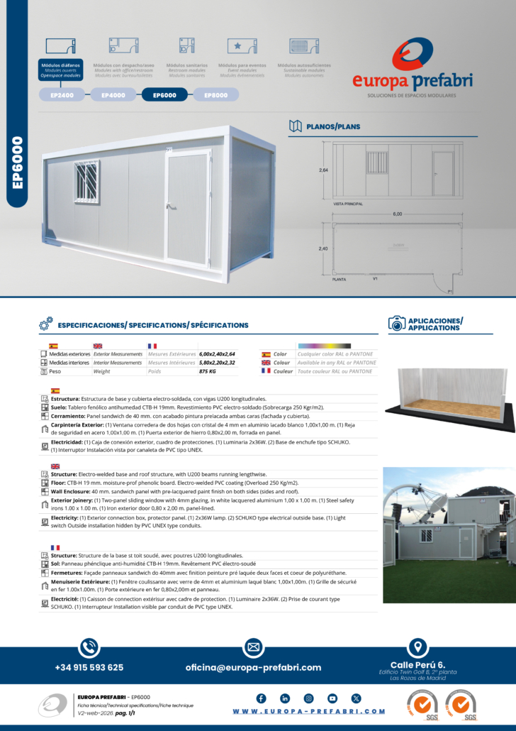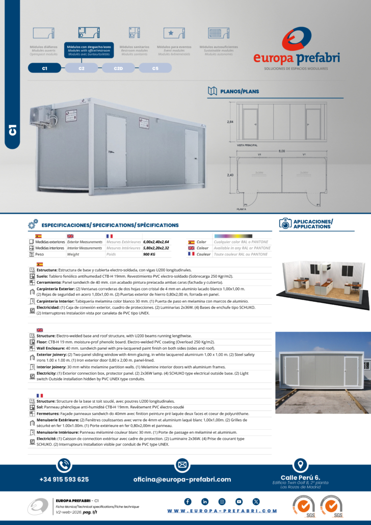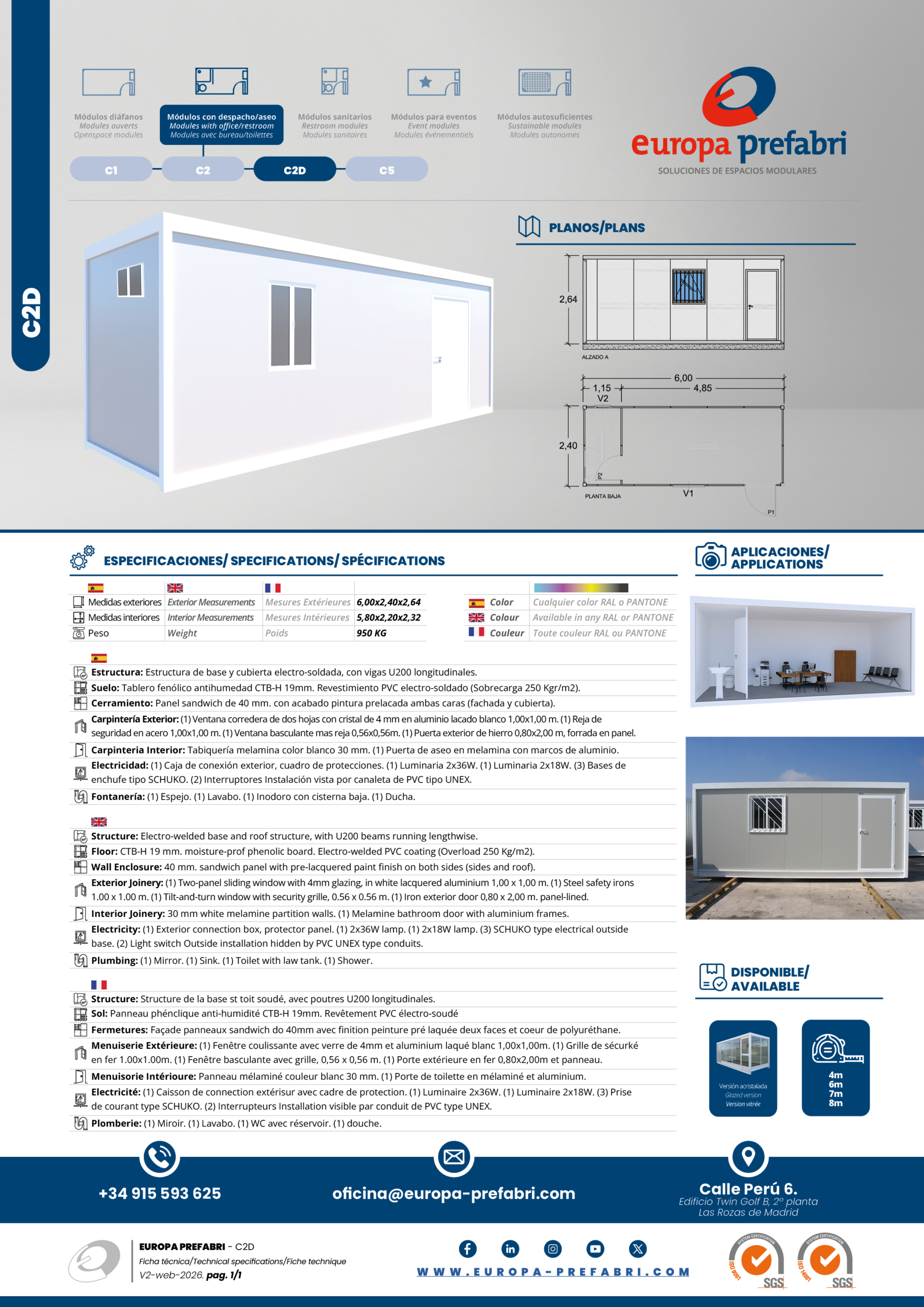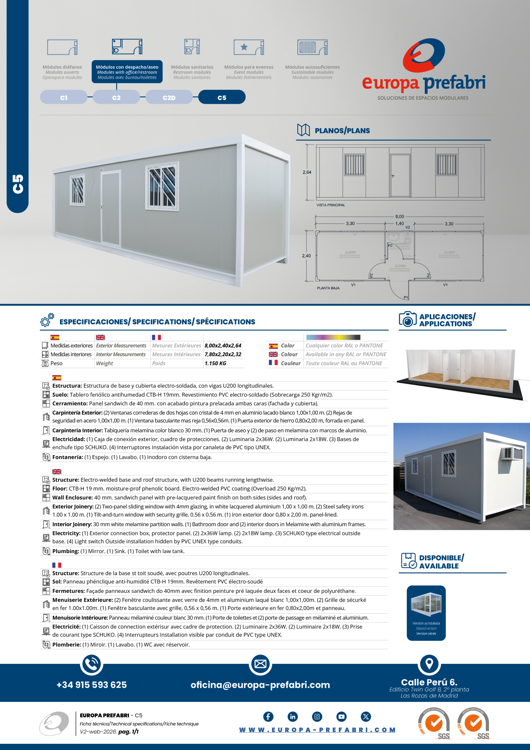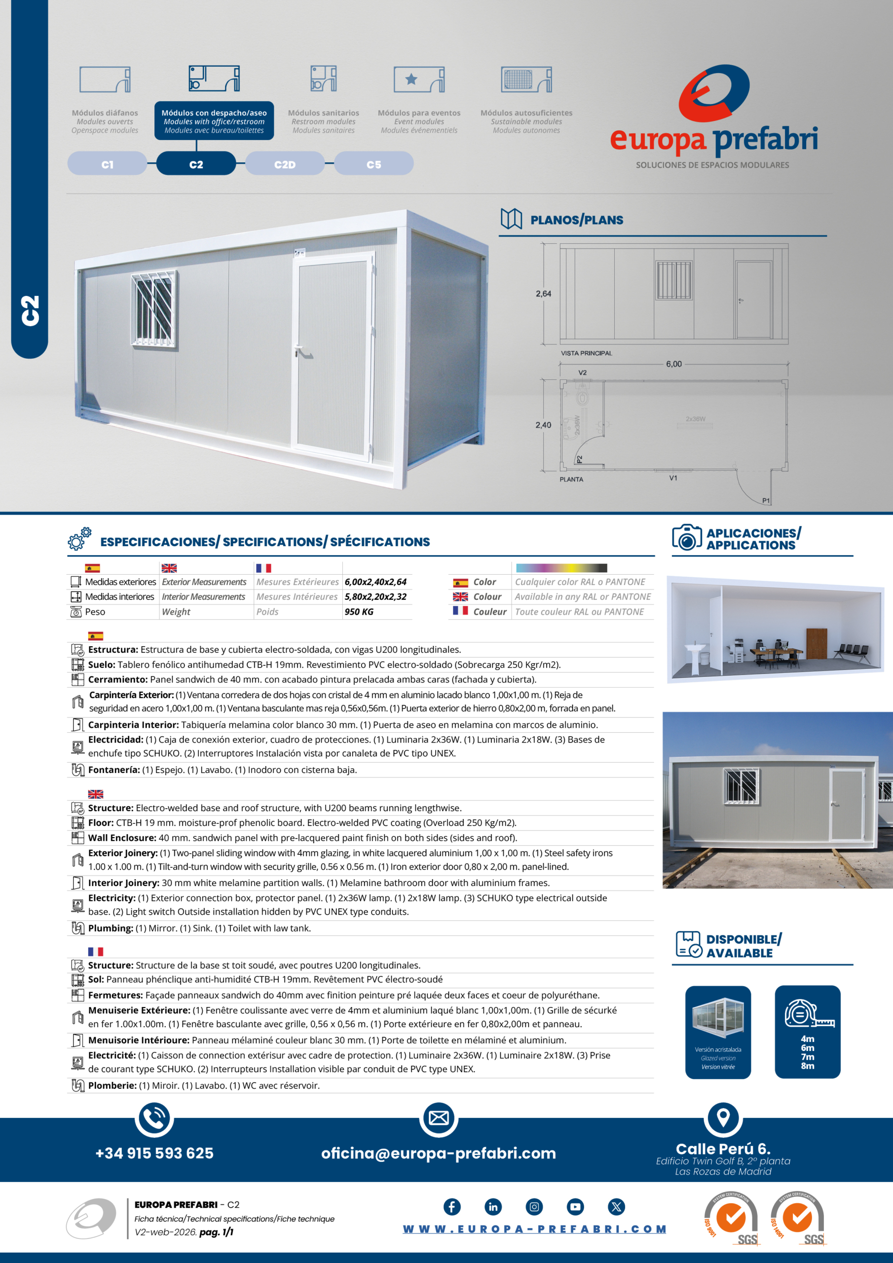 Alquiler y venta de casetas prefabricadas modulares para oficinas de obra, vestuarios, comedores, baños, almacenes.