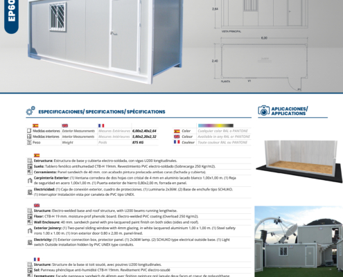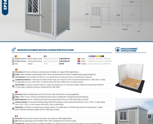 Además realizamos el diseño y fabricación de casetas a medida con las especificaciones técnicas requeridas por el cliente (dimensiones, materiales, distribución interior, etc).